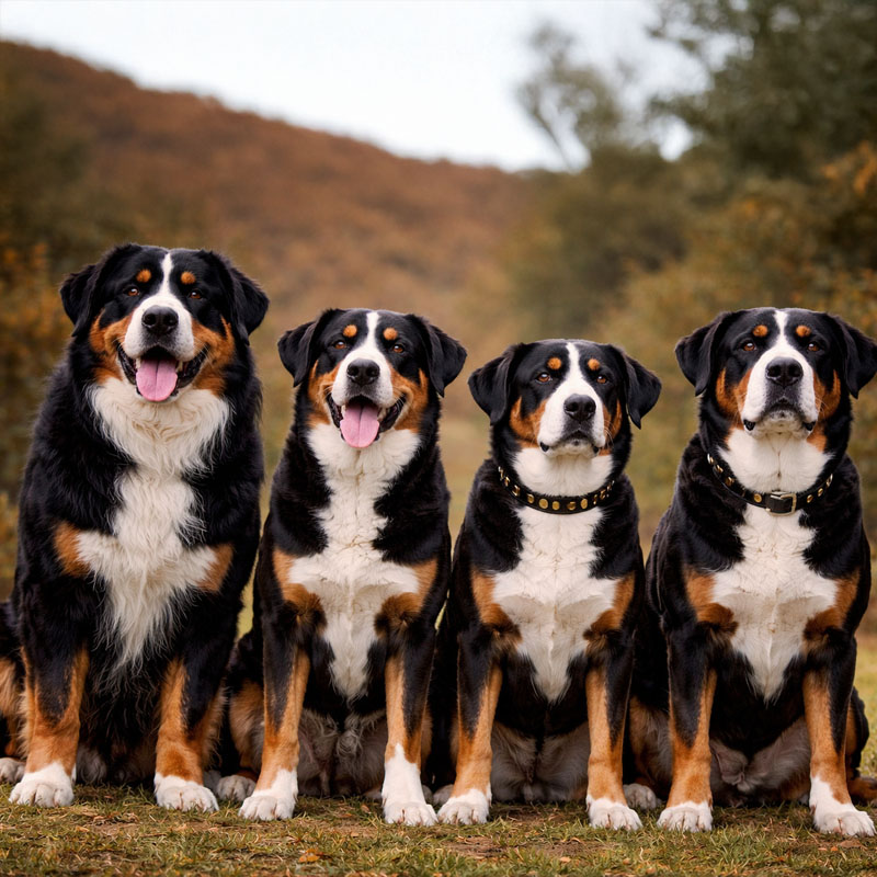 Quatre races, un même cœur : fidèle, doux et profondément attaché à sa famille. Découvrez les bouviers suisses et leurs magnifiques personnalités.