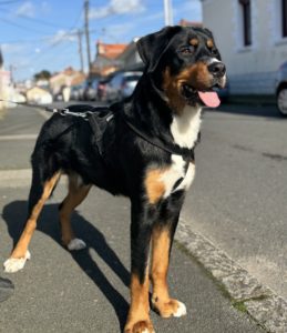 OSLO est un chien qui est très sensible et très énergique, il est plutôt peureux et soumis avec les autres chiens, avec les chats il est intéressé mais pas violent. Il reste brut avec les enfants en bas âge sans méchanceté, juste foufou. Il est propre, n’est pas fugueur . Il aura besoin d’une famille un peu sportive pour faire des balades afin de canaliser son énergie. Un copain ou une copine serein et bien codé serait un plus pour OSLO. Il aurait besoin d’une famille avec beaucoup de présence.