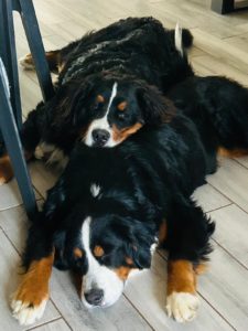 VANILLE et VINNIE sont des boubous obéissants, adorables, bien dans leurs patounes avec un caractère doux et joueur. VANILLE est fugueuse lorsqu’elle s’ennuie.VINNIE , son fidèle chevalier, la suivra partout. Ils s’entendent bien avec leurs congénères et le chat de la maison, ils ont tendance à vouloir jouer avec les chats inconnus. Ils connaissent et adorent les enfants et, comme beaucoup de bernois, peuvent parfois être un peu brutes, mais toujours sans agressivité. Ils sont propres, pas destructeurs, très joueurs et câlins. VINNIE tire encore en laisse en début de balade avec l’excitation, mais s’assagit vite. Ils ont peu de rappel et VANILLE peut se montrer fugueuse si elle s’ennuie ou reste seule. VINNIE la suivra dans toutes ses escapades, autorisées ou non !
